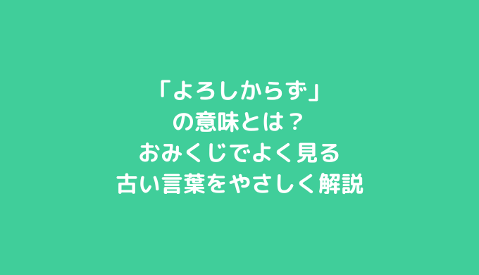 おみくじや古い文章で見かける「よろしからず」という言葉。