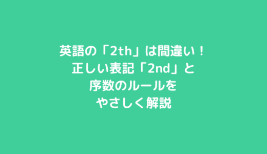 英語で「2番目」を書くときに「2th」としていませんか。 実はこの表記、ネイティブには通じない誤りです。 正しくは「2nd」と書き、これは「second(セカンド)」という単語に由来しています。 この記事では、「1st」 ... ]]>